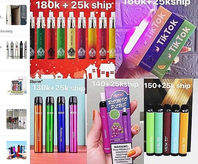 Khắp các trang mạng xã hội, chỉ cần tìm kiếm "thuốc lá điện tử giá rẻ" thì hàng loạt các hội nhóm, fanpage, cá nhân đăng những bài quảng cáo và bán sản phẩm hiện lên.