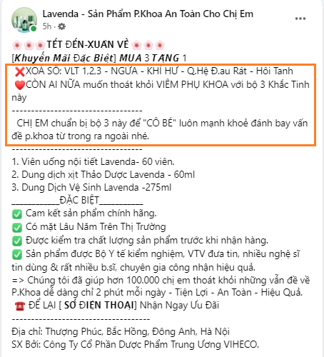 | Thông tin quảng cáo tại Facebook Page “Lavenda - Sản Phẩm P.Khoa An Toàn Cho Chị Em” |