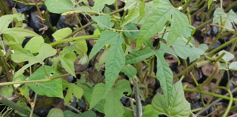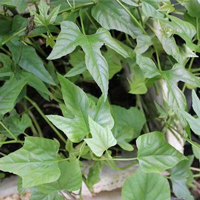 Tua cuốn hình sợi đơn. Lá đơn, hình dạng thay đổi, thường xẻ thùy chân vịt, phía cuống hình tim, dài và rộng đến 6 – 8cm, những lá phía gốc hình mác gần như nguyên, các lá phía trên chia 5 – 7 thùy dài gần bằng nhau, mép hơi có răng cưa.