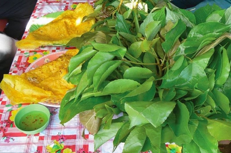 Lá lụa cũng được thêm vào món bánh Xèo giúp tạo hương vị chua và thơm cho món bánh