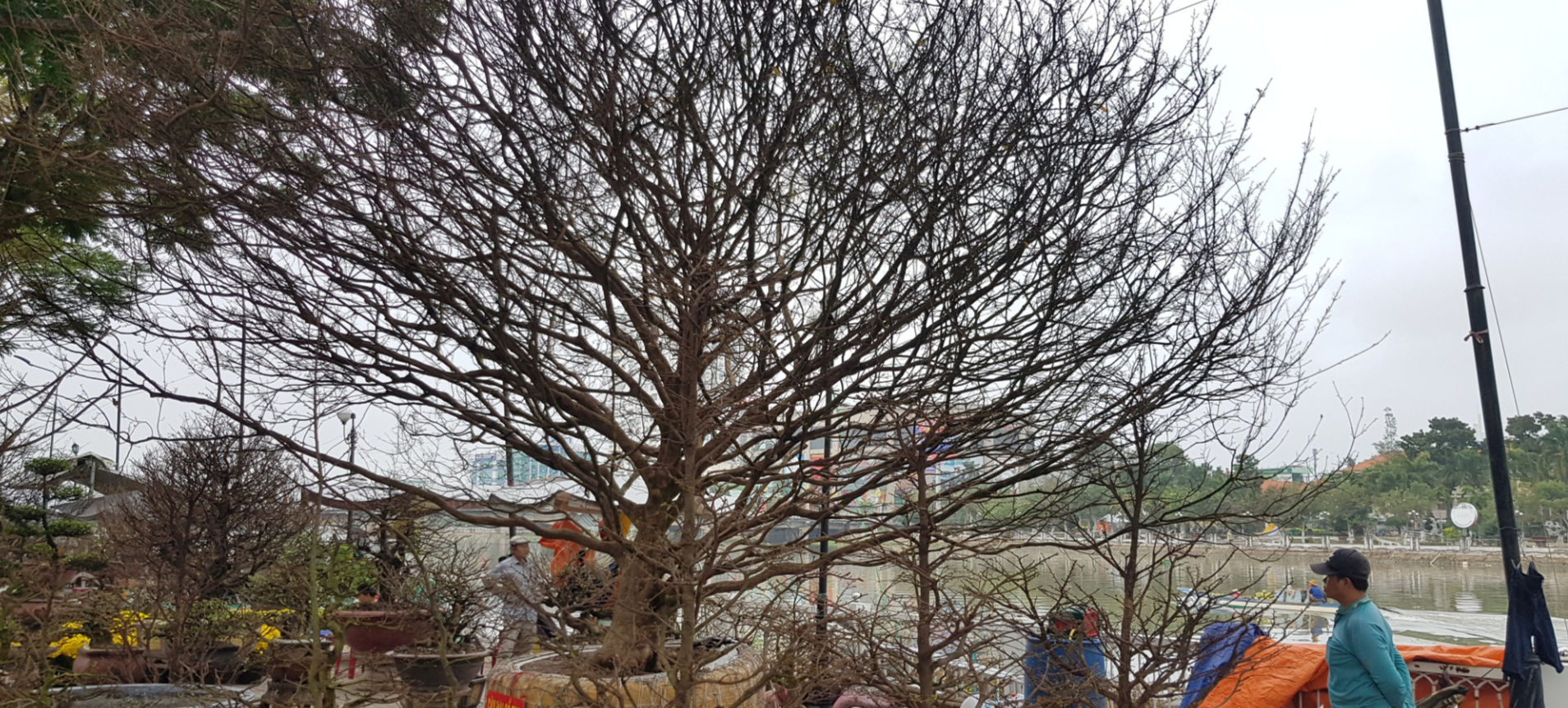 Đáng chú ý, cạnh cầu Duy Tân, TP Long Xuyên là cây mai cổ thụ đang được "hét giá" 6,8 tỉ đồng, đang thu hút rất nhiều người dân trong và ngoài tỉnh đến xem. "Cây mai này đẹp và to lớn hơn những cây khác nhưng giá này cao quá. Tôi nghĩ rất khó tìm người mua được nó", một người dân nói.