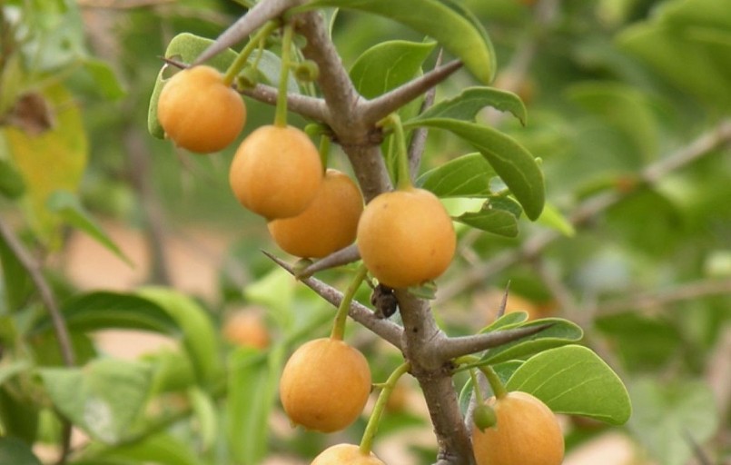 Hoa mọc thành cụm ở kẽ lá, có màu vàng nhạt và thường mọc vào tháng 4 – 5 hằng năm. Quả mọc vào tháng 10 – 12, dạng kép, có màu vàng hoặc đỏ khi chín, bên trong chứa hạt nhỏ.