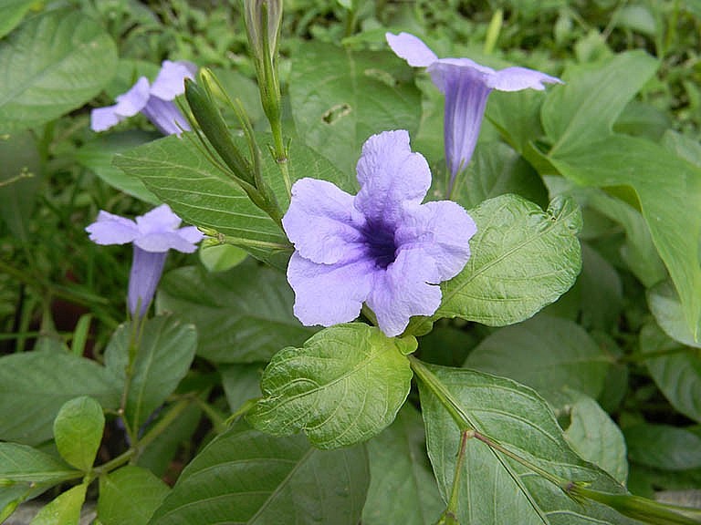 Hoa mọc ở ngọn hoặc ở nách lá, hoa lớn, có khoảng 5 cánh, màu xanh tím. Quả nang, có màu nâu đen khi chín. Quả thường “nổ” bắn ra hạt đen, dẹt khi tiếp xúc với nước. Chính vì vậy mà còn được gọi là cây quả nổ hoặc cây nổ.
