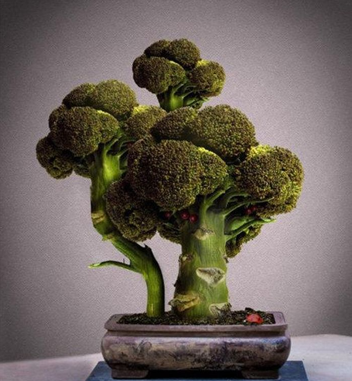 | Cây súp lơ xanh được tạo hình thành bonsai cuốn hút. |