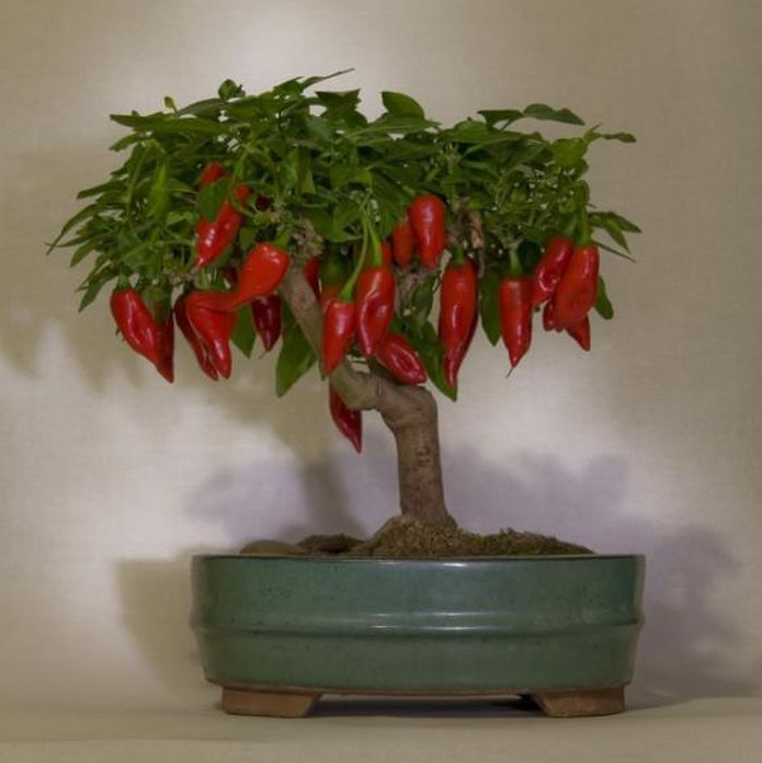 | Cây ớt bonsai trĩu quả trông thích mắt. |