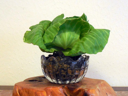 | Cải bắp lên đời thành cây cảnh chơi Tết. |