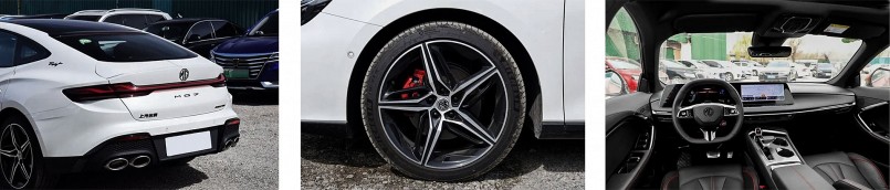 Tại Trung Quốc, mẫu xe này có những trang bị như đèn pha Led, đèn Led định vị ban ngày, mâm 19 inch, cùm phanh thể thao, đèn hậu Led và cánh gió đuôi chủ động. Ngoài ra, MG 7 còn ghi điểm nhờ áp dụng phong cách thiết kế kiểu fastback khá giống nhiều mẫu xe sang thể thao như Audi A7 Sportback.