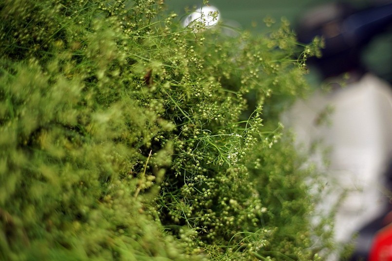 Vào những ngày cuối năm, bên cạnh nồi bánh chưng thơm lừng, chậu nước lá mùi cũng là mùi hương không thể thiếu. Cây mùi để nấu nước tắm phải là loại mùi già đã trổ hoa, kết trái, thân cây đã chuyển từ màu xanh sang nâu tía, khi đun lên, cho mùi thơm.
