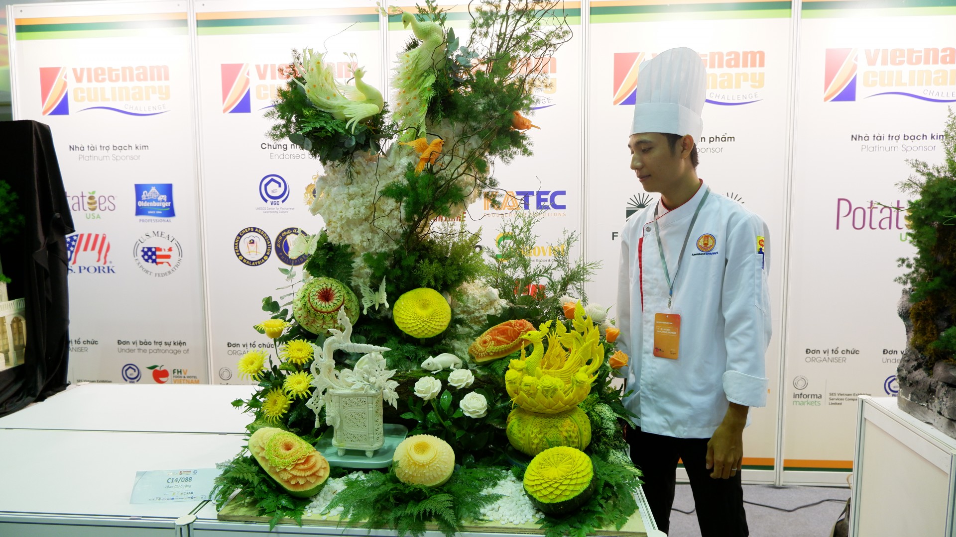 Dưới bàn tay tài hoa của anh Phan Chí Cường, tác phẩm dự thị về nghệ thuật trình bày – điêu khắc củ quả tại Food & Hotel Vietnam 2022 tạo thu hút, ngưỡng mộ và hiếu kỳ từ đông đảo khách tham quan.