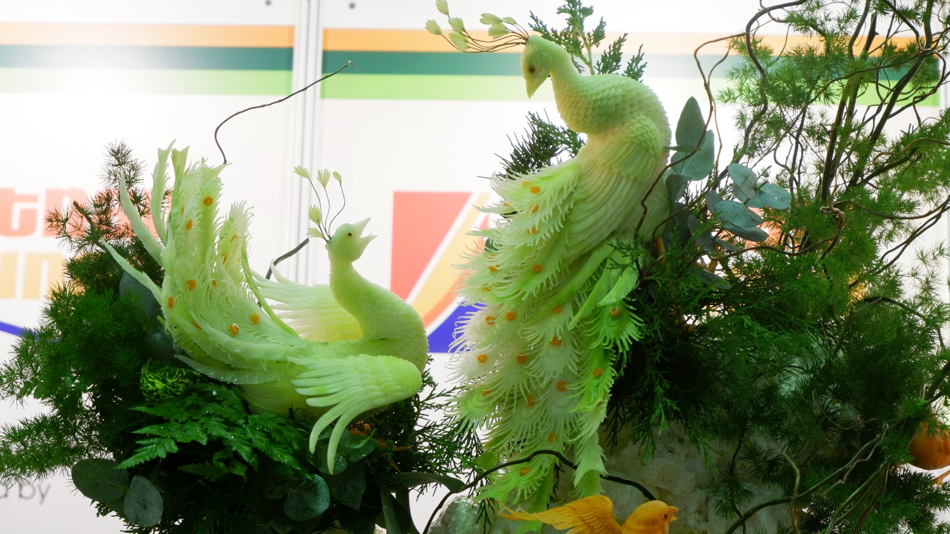 | Cặp chim công của Thái Lan được tạo nên từ quả dưa hấu |