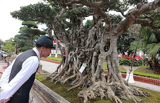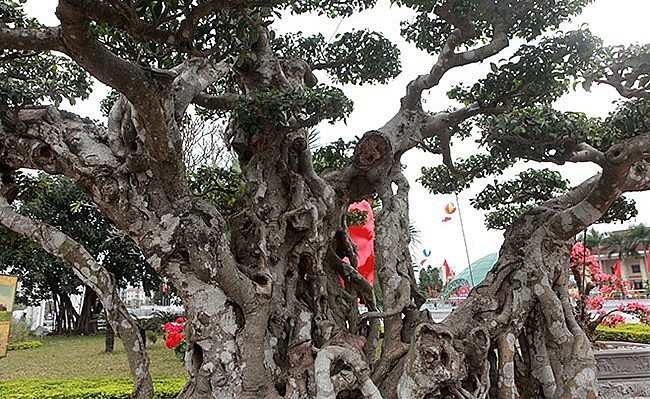 | Cây sanh cổ "Thành đồng Tổ quốc" cao 2,1m tính từ mặt chậu, rộng 3,5m. |