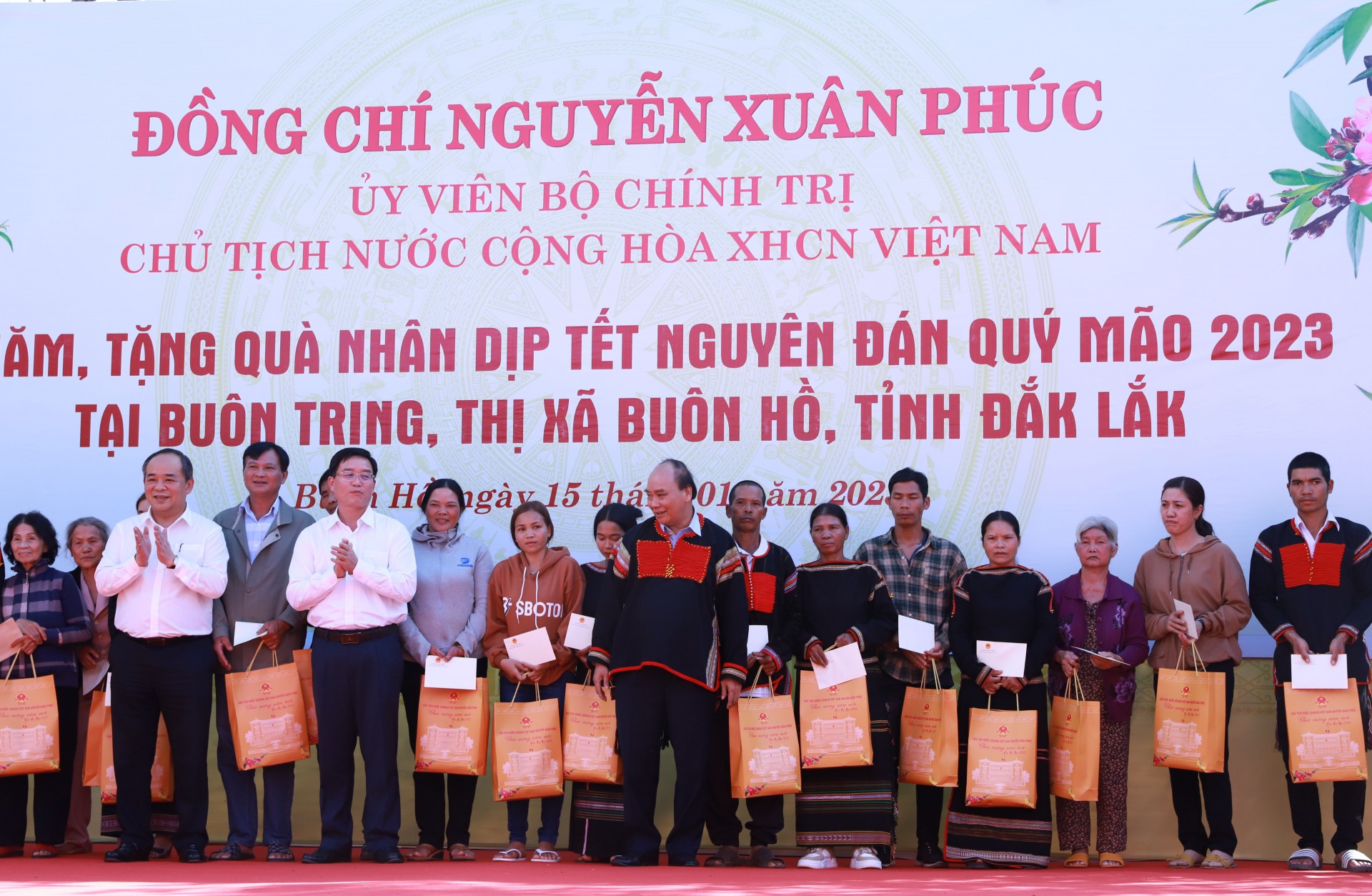 Chủ tịch nước Nguyễn Xuân Phúc nhấn mạnh và mong muốn: "Các cấp ủy, chính quyền các cấp Đắk Lắk, thị xã Buôn Hồ tập trung làm tốt công tác chăm lo, đảm bảo Tết cho bà con, nhất là các vùng sâu, vùng xa, không để trường hợp nào bị đói cơm, lạt muối trong dịp Tết cổ truyền của dân tộc. Các ban ngành, cơ quan liên quan cần đẩy mạnh phát huy, bảo tồn văn hóa truyền thống, bài trừ hủ tục lạc hậu, tạo điều kiện tốt hơn về văn hóa, tinh thần cho người dân".