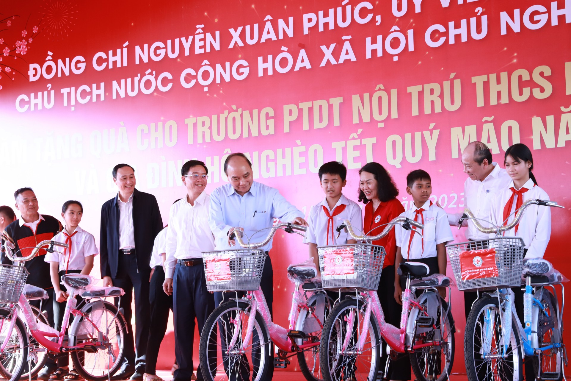 Tại trường, Chủ tịch nước Nguyễn Xuân Phúc tặng bếp ăn trị giá 300 triệu đồng cho thầy và trò nhà trường; tặng 100 suất quà và 50 chiếc xe đạp cho học sinh và gia đình có hoàn cảnh khó khăn huyện Krông Búk.