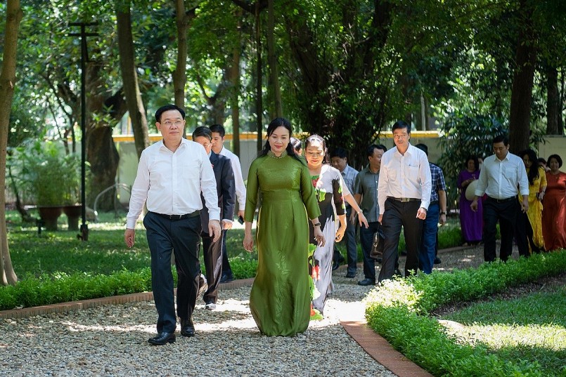 Nói chuyện thân mật với cán bộ, nhân viên Khu di tích, Chủ tịch Quốc hội Vương Đình Huệ căn dặn các cán bộ, nhân viên Khu di tích tiếp tục nỗ lực trong việc giữ gìn, bảo quản các kỷ vật, tư liệu về Chủ tịch Hồ Chí Minh cho các thế hệ mai sau.
