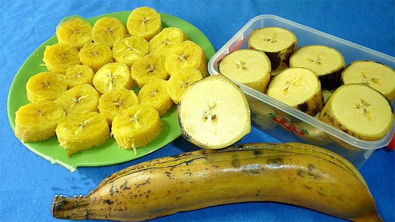 Sau khi được chế biến, chuối tá quạ có màu vàng bắt mắt, vị ngọt thanh. Bạn có thể thêm chuối tá quạ đã được nấu chín vào món salad của mình.