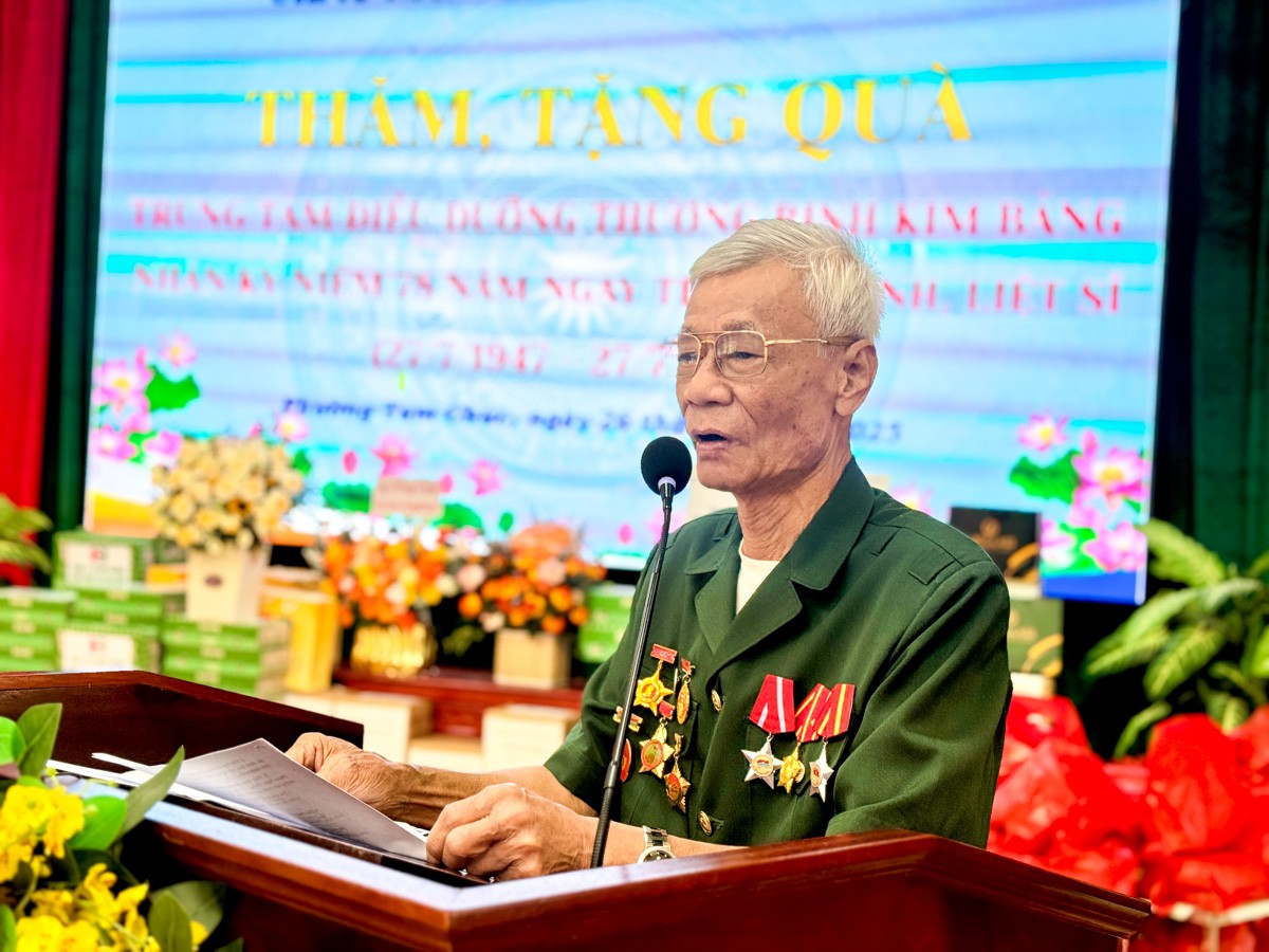 Phát biểu tại buổi lễ, ông Phạm Ngọc Thắng – Quyền Giám đốc Trung tâm Điều dưỡng thương binh Kim Bảng – cho biết: “Trung tâm được thành lập từ tháng 3/1976, hiện đang nuôi dưỡng, điều trị 106 đối tượng đến từ 20 tỉnh, thành phố từ Quảng Ngãi trở ra. Trong đó có 72 thương binh, bệnh binh nặng hạng đặc biệt, thương tật từ 81% trở lên, và 34 đối tượng là hưu trí, viên chức mất sức, thân nhân người có công”.