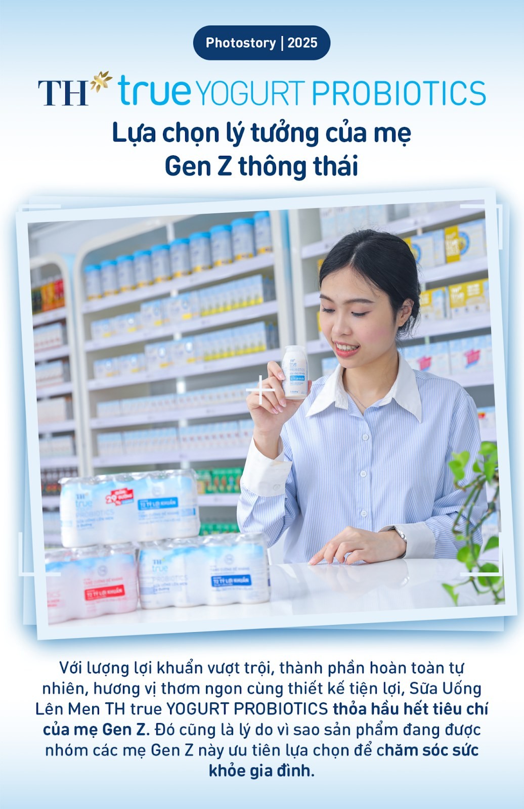 Trong đó, Sữa Uống Lên Men TH true YOGURT PROBIOTICS là một trong số những sản phẩm lọt vào mắt xanh thế hệ này, nhanh chóng trở thành “trợ thủ” dinh dưỡng hàng ngày giúp mẹ Gen Z chăm sóc sức khỏe cả gia đình nhờ hội tụ nhiều ưu điểm sáng giá.