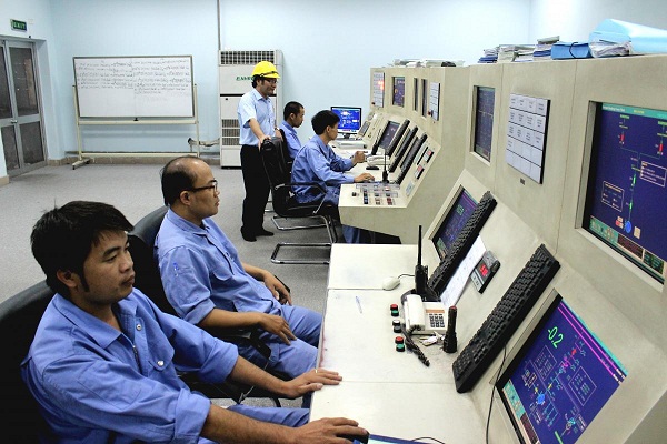 Cán bộ Phòng điều khiển trung tâm (Nhà máy Nhiệt điện Sơn Động) đang vận hành các tổ máy (Ánh Thế Hiếu)