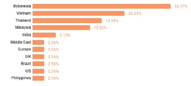 Biểu đồ các quốc gia đang được các nhà đầu tư, doanh nghiệp xem xét tìm kiếm nhà cung cấp thay thế Trung Quốc. Nguồn: Tech in Asia.