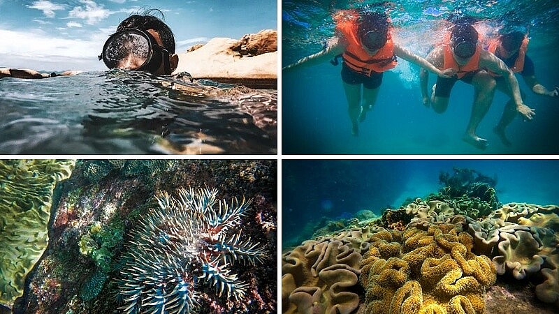 Cù Lao Câu còn mang một nét tự nhiên đặc biệt khi có bãi san hô đa dạng kích thước và rực rỡ sắc màu, cực đẹp. Nhờ thế, bạn sẽ trải nghiệm cảm giác hòa mình vào dòng nước biển xanh biếc và lặn ngắm san hô thỏa thích.