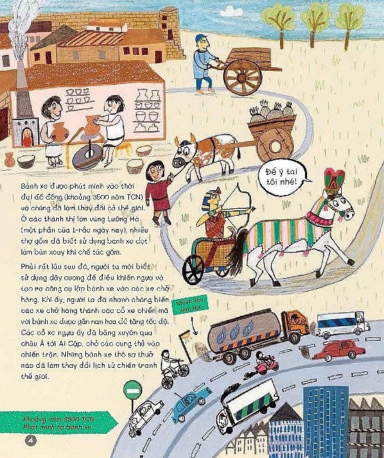 Cuốn đầu tiên là Câu chuyện về các phát minh vĩ đại. Đó là chuyến du hành ngược thời gian hàng nghìn năm trước để khám phá các phát minh vĩ đại nhất trong lịch sử. Bắt đầu từ những vòng quay của bánh xe trên đường phố La Mã, các bạn nhỏ sẽ ra biển lớn theo la bàn chỉ hướng, rong ruổi khắp nơi trên tàu hoả chạy bằng động cơ hơi nước rồi trở về nhà, bật điện lên và đọc sách…