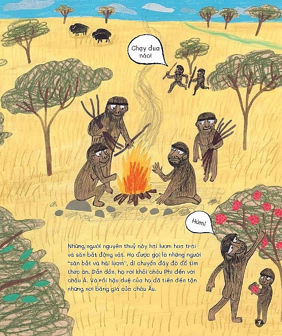 Tiếp đến là cuốn Câu chuyện về lịch sử loài người. Cách đây hàng triệu năm một vụ va chạm khủng khiếp khiến loài khủng long đang thống trị Trái Đất cùng nhiều loại sinh vật khác bị tuyệt diệt. Nhưng thật kì diệu là một loại sinh vật nhỏ bé vẫn sống sót và dần tiến hóa thành con người. Từ đây các bạn nhỏ sẽ cùng được đồng hành với lịch phát triển của loài người từ việc săn bắt, hái lượm, tìm kiếm thức ăn đến việc khám phá thế giới và mở rộng các thành thị...