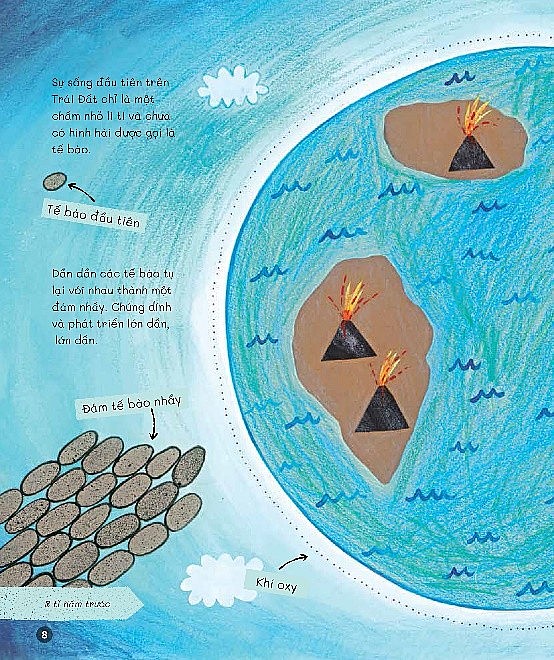 Vậy trước khi có loài người thì sự sống trên Trái Đất thế nào? Điều này sẽ được giải đáp trong cuốn Câu chuyện về sự sống trên Trái Đất. Thuở ban đầu, trên Trái Đất không có sự sống. Đó là một nơi vô cùng nóng bức và ồn ào. Khí cuồn cuộn bốc lên từ miệng núi lửa còn dung nham sôi sục chảy tràn trên mặt đất... Rồi cách đây gần 4 tỉ năm trước, những chấm nhỏ li ti và chưa có hình hài xuất hiện gọi là tế bào xuất hiện đánh dấu sự sống bắt đầu và các tế bào này dần tiến hóa lên thành các sinh vật khác trong đó có loài người.