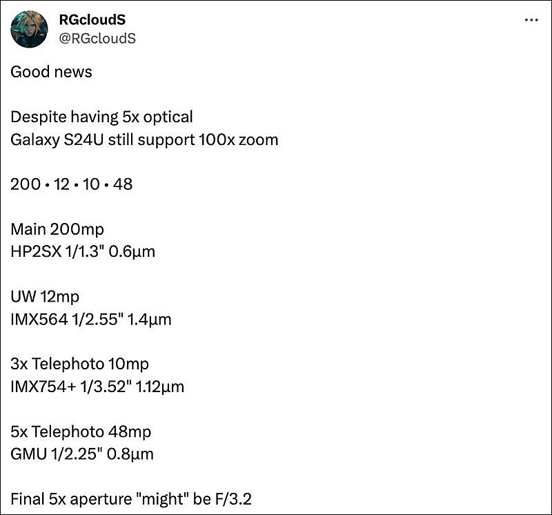 Theo đó, Galaxy S24 Ultra sắp ra mắt được đồn đoán sẽ có thiết lập camera ấn tượng bao gồm: