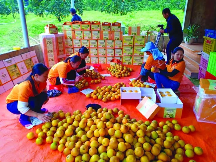 Anh Nguyễn Xuân Hòa - Giám đốc Hợp tác xã Trà Sơn cho biết: “Năm ngoái các thương lái đặt mua hơn 40 tấn, còn năm này sản lượng ít hơn dự kiến khoảng hơn 30 tấn. Hiện Hợp tác xã Trà Sơn có khoảng 15ha cam giòn đạt tiêu chuẩn OCOP trên tổng diện tích khoảng 100ha. Để đảm bảo nguồn cung hợp tác xã đã liên kết với 96 hộ trên địa bàn để bao tiêu sản phẩm”.