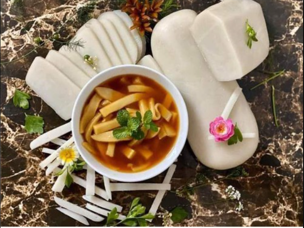 Đặc biệt, bánh khi ngâm lâu sẽ có rêu như đá, khi ăn bà con sẽ dùng xơ mướp hoặc bàn chải để đánh cho đến khi thấy màu trắng tinh như gạo thì dừng lại, bắt đầu thái sợi dài và mỏng để ăn.