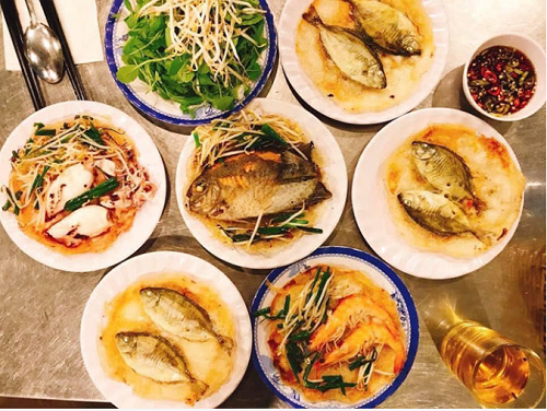 Không chỉ thơm ngon ở hương vị và bắt mắt vì màu sắc hài hòa mà món bánh khoái cá kình còn tạo nên nét thú vị và độc đáo ở cách ăn và không gian ăn.
