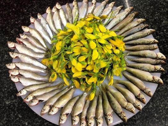 | Cá linh và bông điên điển - đặc sản mùa nước nổi |