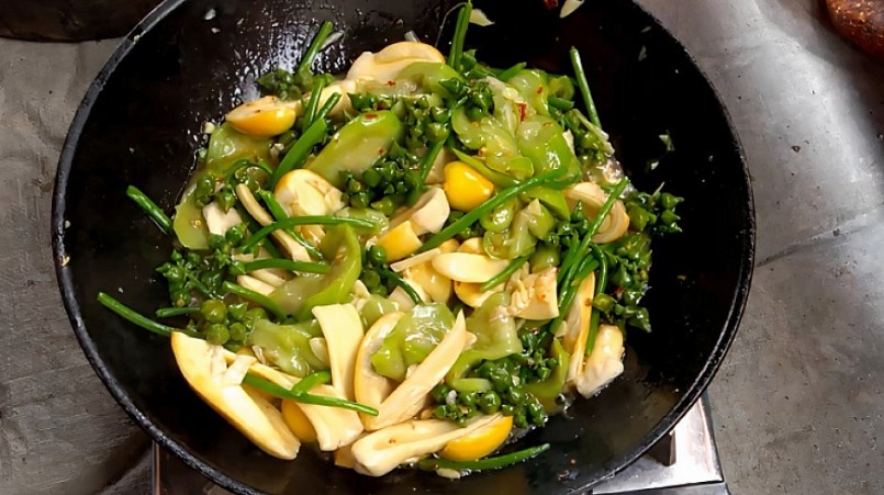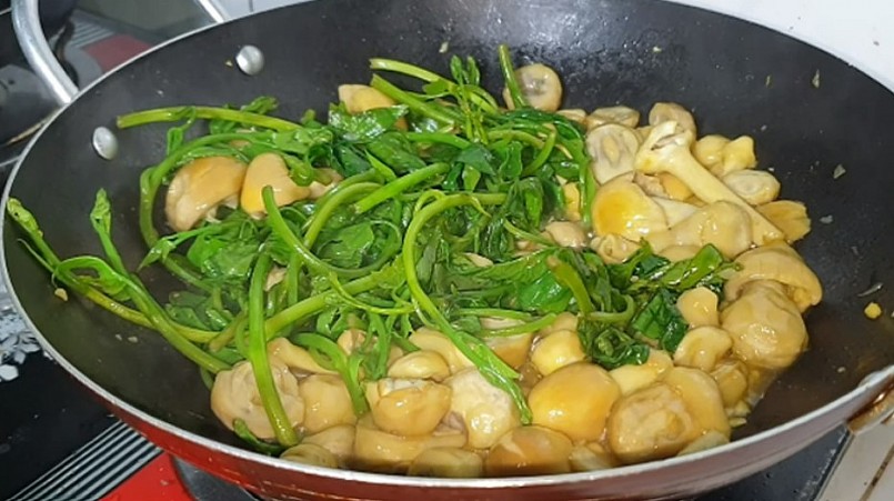 | Nấm trứng xào rau lang |