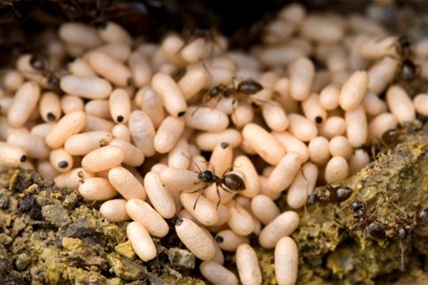 Trứng kiến được lấy từ tổ kiến vàng hoặc kiến đen, chọn những tổ có trứng trắng sữa, căng tròn, không lẫn kiến con.