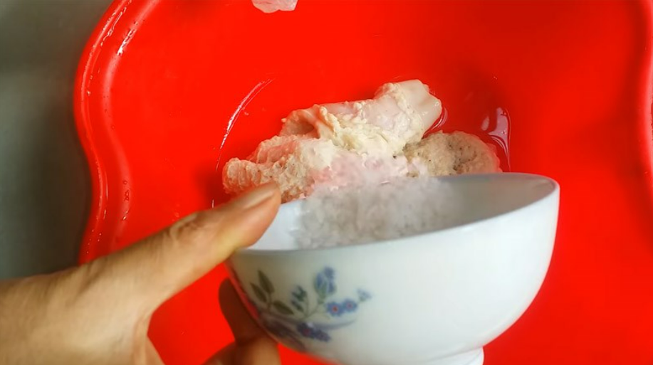 Để làm sạch và khử mùi hôi của sách bò, trước tiên bạn bỏ lá sách vào một cái thau nhỏ rồi cho một lượng muối vừa đủ vào bóp thật kỹ. Thực hiện thao tác trên 2 lần rồi đem rửa lại với nước sạch.