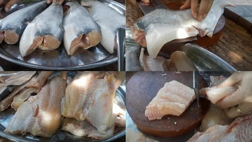 Sau đó, họ tiếp tục dùng lưỡi dao nhỏ bén đặt vào dọc sống lưng cá để lọc phi lê. Cá nhiều thịt ít xương nên chỉ cần mũi dao chuẩn xác là đã loại được phần xương sống. Công đoạn này có thể làm thủ công hoặc làm bằng máy tùy vào mô hình sản xuất.