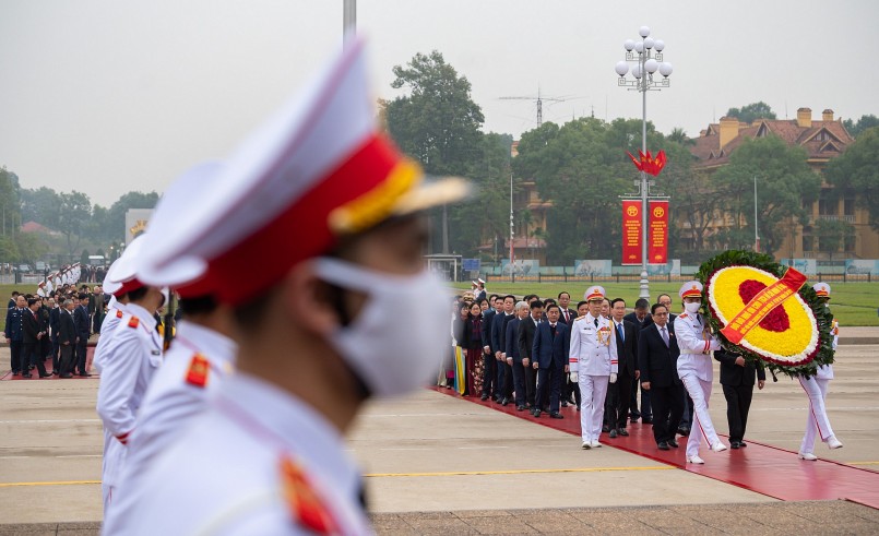 Sáng 5/01, tại Hà Nội, trước giờ khai mạc Kỳ họp bất thường lần thứ 2, Quốc hội khóa XV, các đồng chí lãnh đạo Đảng, Nhà nước, Mặt trận Tổ quốc Việt Nam và các đại biểu Quốc hội đã đặt vòng hoa và vào Lăng viếng Chủ tịch Hồ Chí Minh.