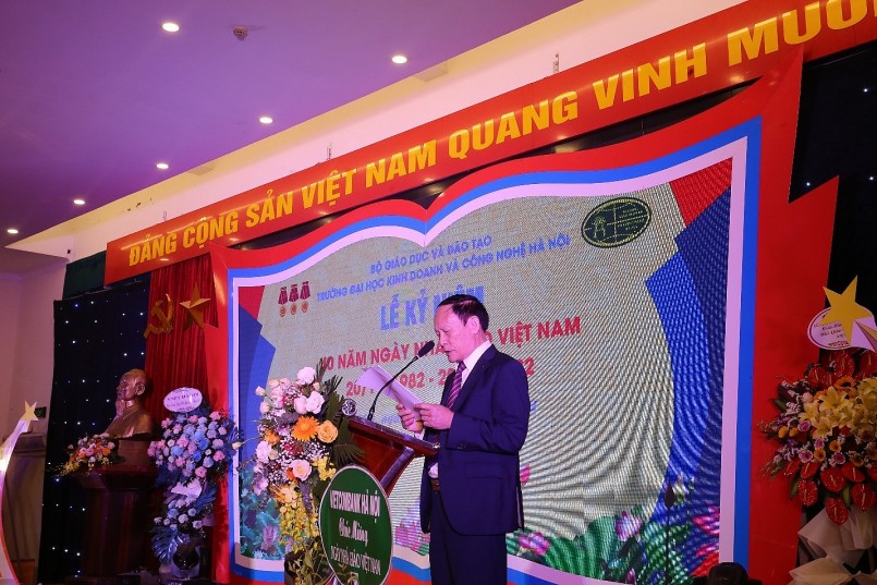 Trong buổi lễ, GS. TS Nguyễn Công Nghiệp, Bí thư Đảng ủy, Phó Hiệu trưởng Thường trực Nhà trường đã gửi lời chúc mừng và cảm ơn đến tập thể các thầy cô giảng viên, các cán bộ, nhân viên Trường Đại học Kinh doanh và Công nghệ Hà Nội đã hết lòng, hết sức cống hiến cho sự nghiệp giáo dục của nước nhà ngày một phát triển.