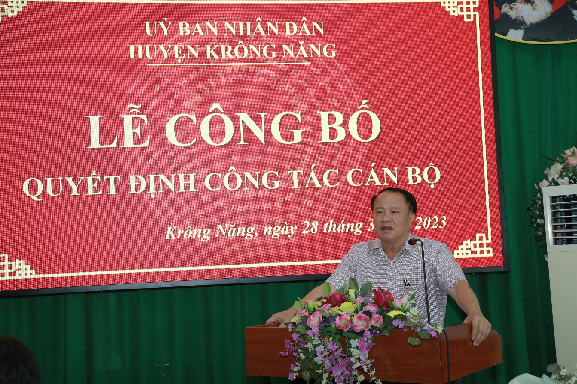Sáng 28/3, UBND huyện Krông Năng, tỉnh Đắk Lắk tổ chức Lễ công bố Quyết định điều động, luân chuyển công tác 5 cán bộ trên địa bàn huyện.
