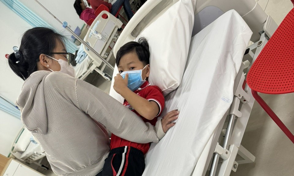 | Một phụ huynh đang chăm sóc học sinh bị ngộ độc tại bệnh viện. |