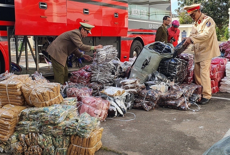 Theo đó, vào rạng sáng ngày 17/1, Cục QLTT tỉnh Đắk Lắk phối hợp với Phòng CSGT Công an tỉnh Đắk Lắk làm nhiệm vụ trên đường Hồ Chí Minh đoạn qua xã Cư Kpô, huyện Krông Búk, tỉnh Đắk Lắk. Tại đây, tổ công tác phát hiện xe khách giường nằm chạy hướng TP. HCM đi Gia Lai có biểu hiện nghi vấn nên ra tín hiệu dừng phương tiện kiểm tra.