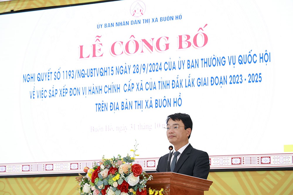 Sáng 31/10, UBND thị xã Buôn Hồ đã tổ chức lễ công bố Nghị quyết số 1193/NQ-UBTVQH, ngày 28/9/2024 của Ủy ban thường vụ Quốc hội về việc sắp xếp đơn vị hành chính cấp xã của tỉnh Đắk Lắk giai đoạn 2023 – 2025 tại xã Buôn Hồ.