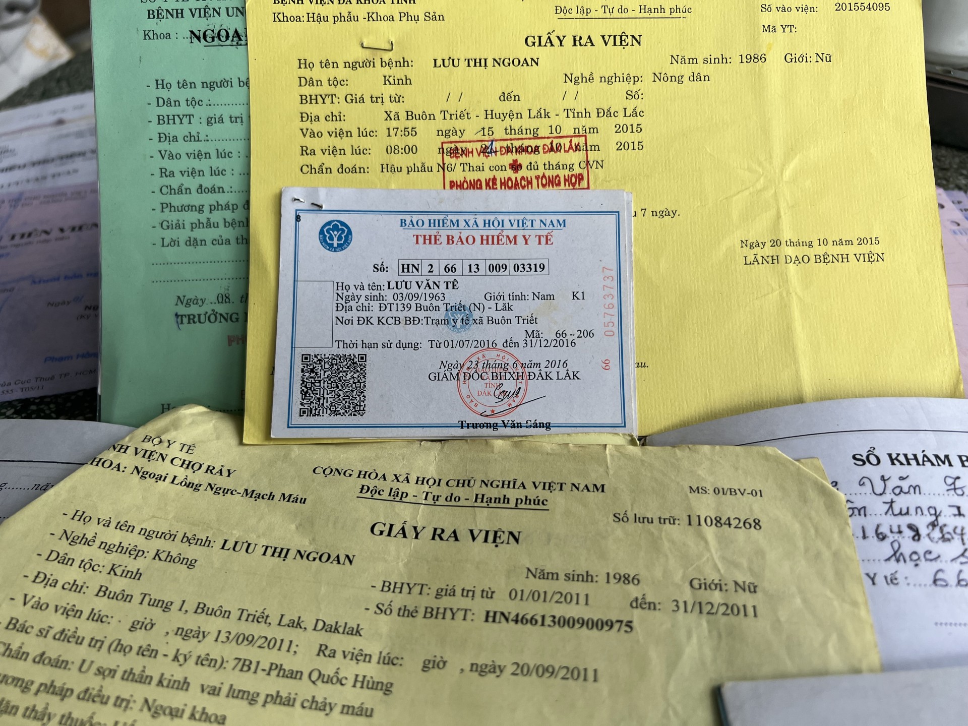 | Giấy khám chữa bệnh những năm trước của gia đình ông Tê khiến nhiều người không khỏi xót xa. |