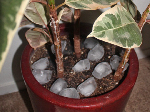 Nếu tưới thiếu nước, cây sẽ khó phát triển tốt, còn khi tưới quá nhiều thì lại bị úng cây. Để hóa giải nỗi lo thừa thiếu nước, bạn có thể đặt đá viên vào chậu cây.