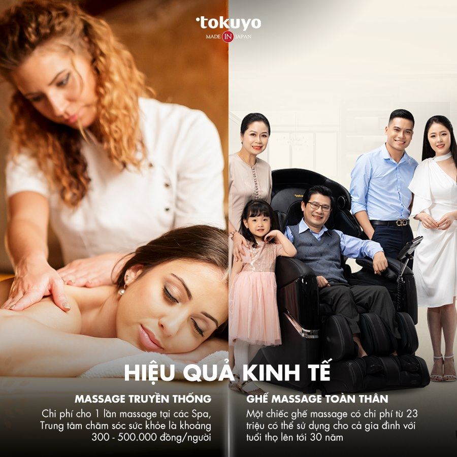 Mặc dù có chi phí đầu tư ban đầu cao, nhưng ghế massage toàn thân lại cho thấy những hiệu quả tiết kiệm về kinh tế rõ rệt khi so sánh với hình thức massage truyền thống. Theo đó, một chiếc ghế massage với chi phí trung bình chỉ từ 23 triệu có thể sử dụng cho cả gia đình với tuổi thọ lên tới 30 năm → Chi phí ~2.500đ/ngày sử dụng.