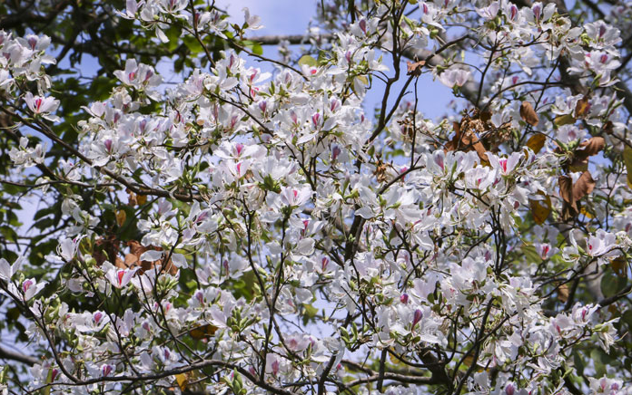 | Các bản làng vùng cao Điện Biên ngập trong sắc trắng hoa ban. |