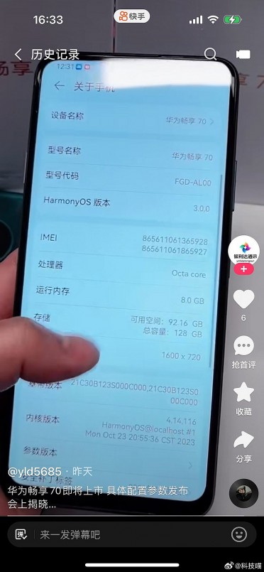 Hình ảnh thực tế của Huawei Enjoy 70 series được blogger công nghệ chia sẻ trên mạng xã hội weibo.