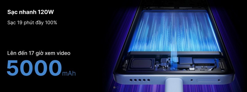 Sản phẩm được cung cấp năng lượng bởi viên pin 5.000mAh, máy hỗ trợ sạc nhanh có dây 120W, sạc nhanh không dây 50W và sạc ngược 10W.