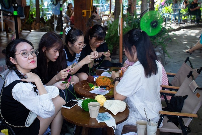 | Đường len mềm mại được các bạn thêu thành bông hoa, giỏ xách. |