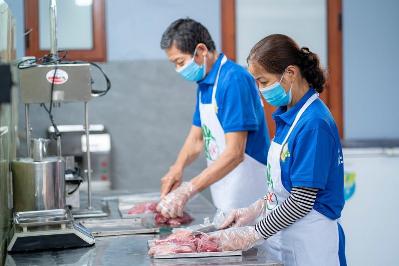 | Mỗi ngày hộ sản xuất kinh doanh giò chả Vạn Xuân Tân Ước sản xuất khoảng 80-100kg giò chả ra thị trường. |